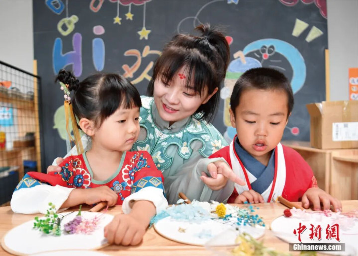 雄安“萌娃”过中秋。中新社记者 韩冰 摄
